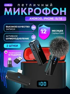 Микрофон петличный беспроводной для Android и IPhone 2шт