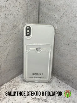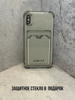 Чехол с визитницей для Iphone X Xs Темный-прозрачный