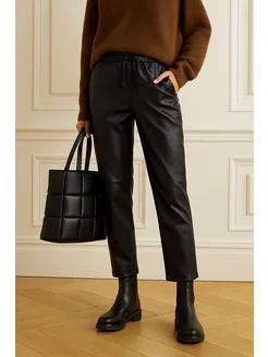 Брюки женские кожаные на резинке с высокой посадкой