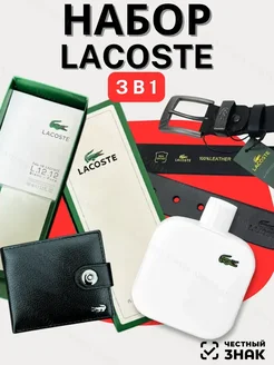 Подарочный набор Lacoste мужчине портмоне ремень и парфюм