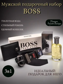 Подарочный набор мужчине Boss портмоне ремень парфюм