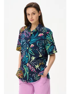 Рубашка яркая свободная с разрезами внизу