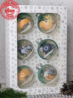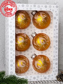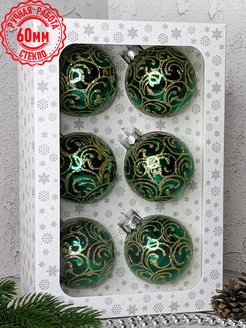 Набор 6шт новогодних елочных шаров из стекла 60мм
