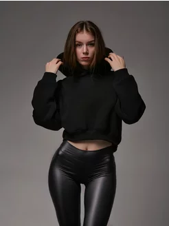 Худи теплое с капюшоном оверсайз с принтом начесом