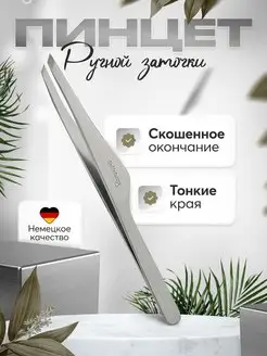Пинцет для бровей профессиональный скошенный ручная заточка