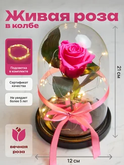 Живая Роза в колбе стабилизированная с подсветкой подарок