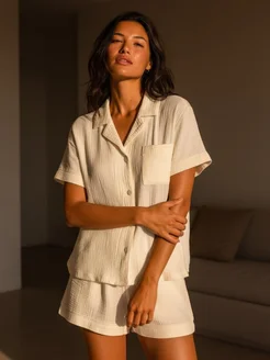 Пижама муслиновая с шортами и майкой 100% хлопок, летняя