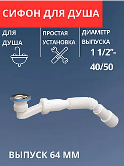 Сифон для душ. поддона низкий, h-70мм, выпуск 64мм