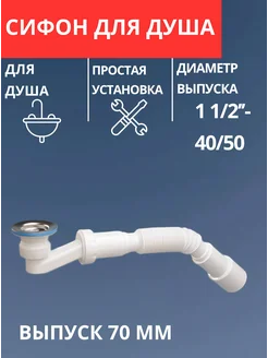 Сифон для душ. поддона низкий, h-90мм, выпуск 70мм