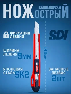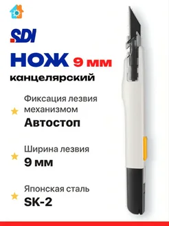 Нож канцелярский 9 мм два фиксатора для точных работ