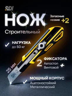 Нож канцелярский строительный с двойным фиксатором 25 мм