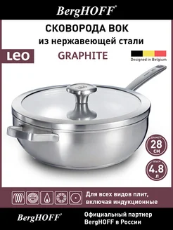 Сковорода вок с крышкой Leo Graphite,28см, 4,8л нерж. сталь