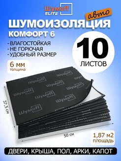 Шумоизоляция автомобиля - Комфорт 6, 6 мм, 10 листов (мини)