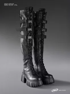 Сапоги ботфорты на тракторной платформе и низком каблуке