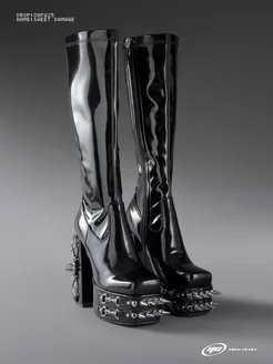 Сапоги осенние высокие на каблуке с шипами