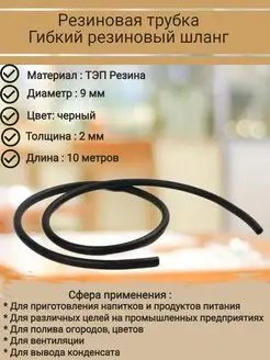 Резиновая трубка, резиновый шланг, черный, Д-9 мм, 10 метров