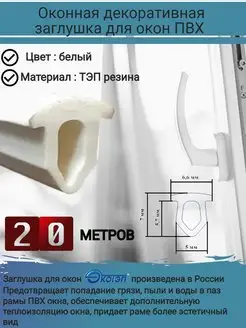 Уплотнитель для окон ПВХ, вставка заглушка паза, белый, 20 м