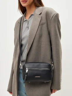 Сумка женская кросс-боди кожаная черная через плечо