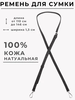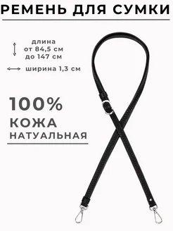 Ручка для сумки длинная кожаная черная с карабином - 60 см