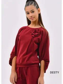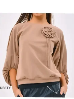 Блузка трикотажная свободная нарядная подростковая бежевая