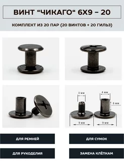 Винт ременной, для ремня, для сумки, замена клепок 20 шт