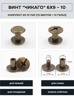Винт ременной, для ремня, для сумки, замена клепок 10 шт