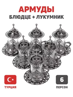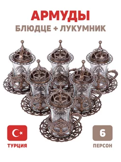 Армуды с блюдцами для чая турецкие набор 6 штук