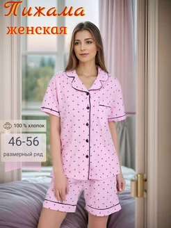 Пижама с шортами и рубашкой в горошек