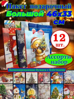 Пакеты подарочные новогодние большие 33*46 набор 12 шт