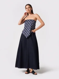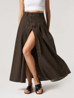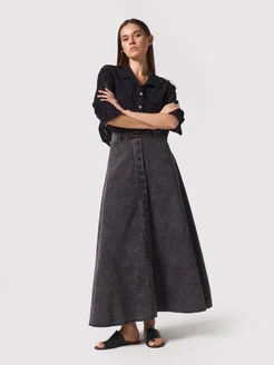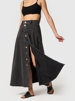 Джинсовая юбка длинная в пол на пуговицах спереди с разрезом