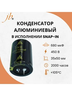 Конденсатор алюминиевый 680 мкФ, 450 В, 35x50 мм