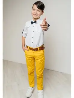 Брюки для мальчика подростковые чиносы праздничные, желтые
