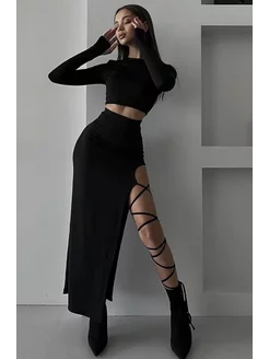 Юбка женская кожаная с разрезом длинная миди карандаш
