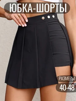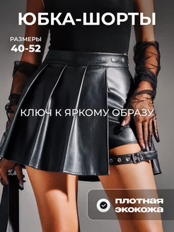 Юбка шорты кожаная теннисная мини короткая с разрезом плиссе