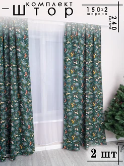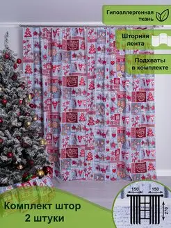 Шторы новогодние для кухни и гостиной длинные 270*150 - 2 шт