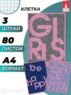 Тетрадь, 80 листов в клетку, 3 штуки
