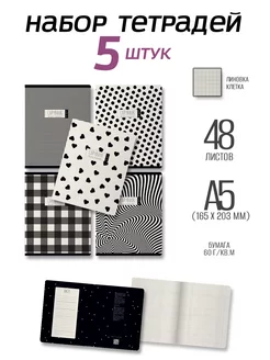 Тетрадь в клетку 48 листов 5 штук А5 165х203 мм