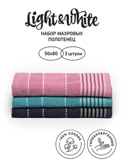 Полотенце банное махровое 50х80 см хлопок, набор 3 штуки