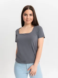 Футболка однотонная базовая с v-вырезом, хлопок