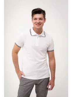 Футболка поло с коротким рукавом однотонная, хлопок