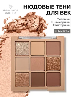 Тени для век нюдовые блестящие коричневые персиковые Корея