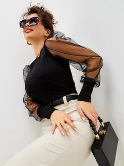 Нарядная кофта праздничная на вечер с прозрачным рукавом