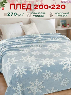 Новогодний голубой плед 200х220 см, зимний в подарок ребенку
