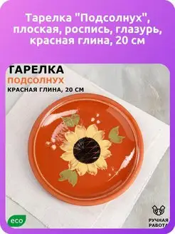 Тарелка "Подсолнух", плоская, роспись, глазурь, 20 см