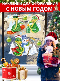 Новогодняя наклейка на окно "Веселые Змейки 2025"