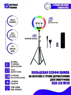 Кольцевая селфи лампа на штативе RGB LED MJ18 для смартфона