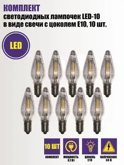 Светодиодные лампочки LED в виде свечи с цоколем E10, 10 шт