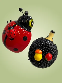 Магниты ручной работы Божья коровка и ежик