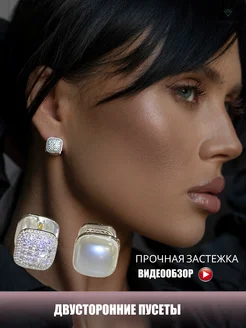 Серьги пусеты с жемчугом двусторонние