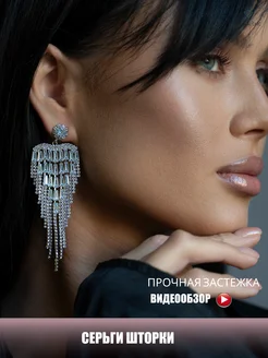 Серьги длинные с цирконом